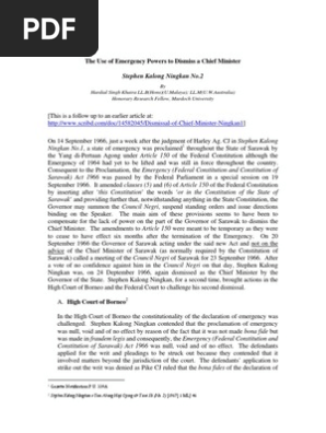Stephen Kalong Ningkan No 2 Use Of Emergency Powers Pdf Federal Government Of The United States Constitution